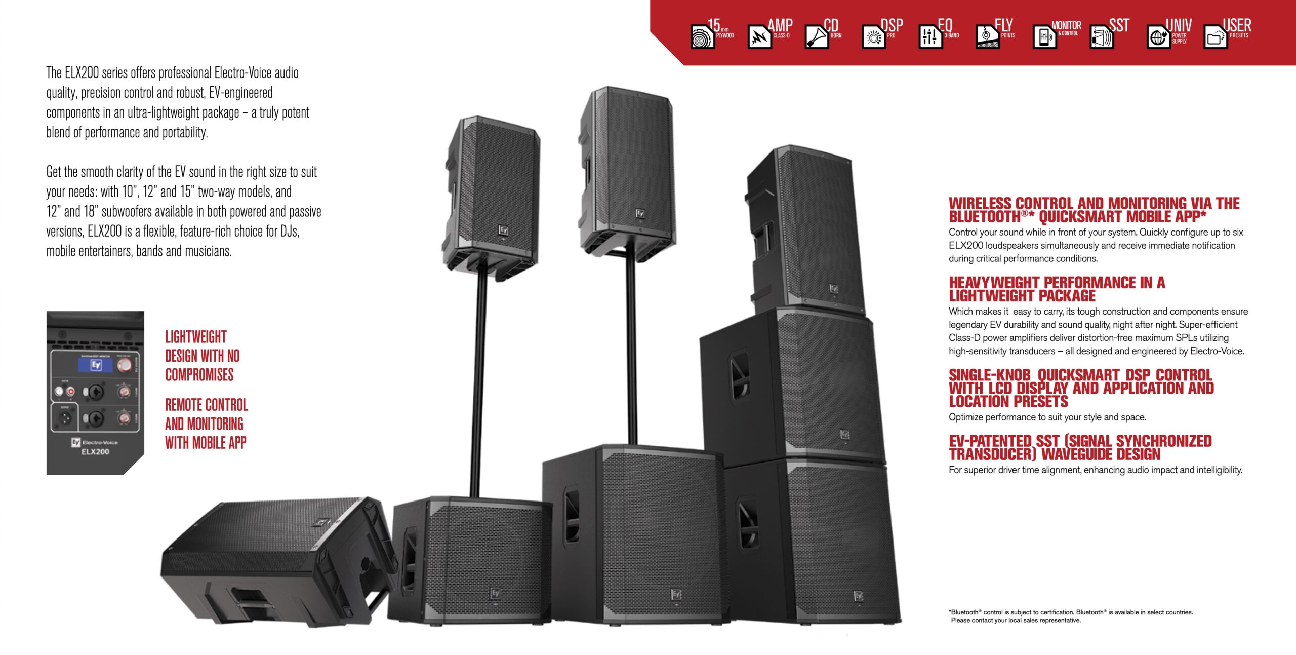 - סדרת ELX200 מציעה את איכות השמע המקצועית של חברת Electro-Voice.
